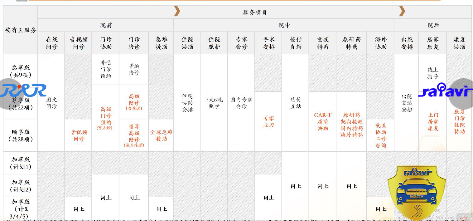• 增值服务升级:在惠享版服务基础上,增加专家点诊、专车接送、特需/国际部直付(无需客户垫付,保护家庭和企业现金流)、海外特药等。