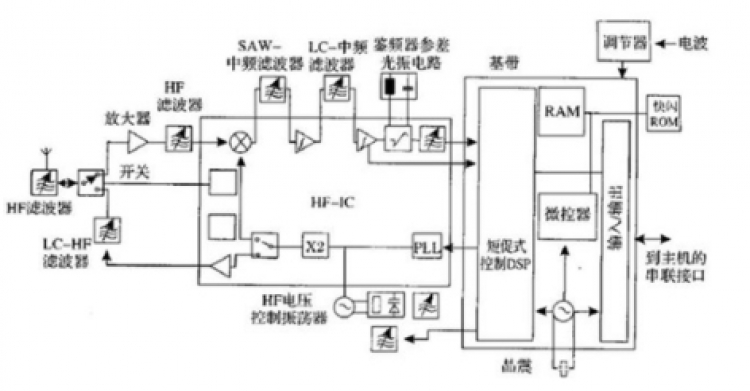 每个芯片包含基带DSP,高频部分和全集成单元的多用途16bitAISC处理器。这种受到保护的“芯片中的高频“体系结构有明显的优点,并远远超过减少分立元件数量的的优点。