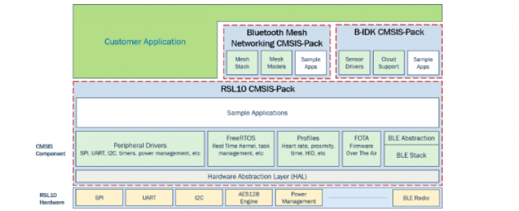 RSL10软件开发套件(SDK)提供一个完整的基于Eclipse的集成开发环境,用于开发超低功耗蓝牙低功耗应用。 该套件支持KeiluVision®和IAR Embedded Work Bench®,以及广泛的抽象、驱动程序和示例应用程序、FreeRTOS和空中固件更新(FOTA)移动应用程序。