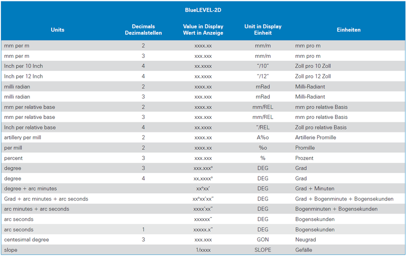The inclination measuring instrument BlueLEVEL-2D has the following features: