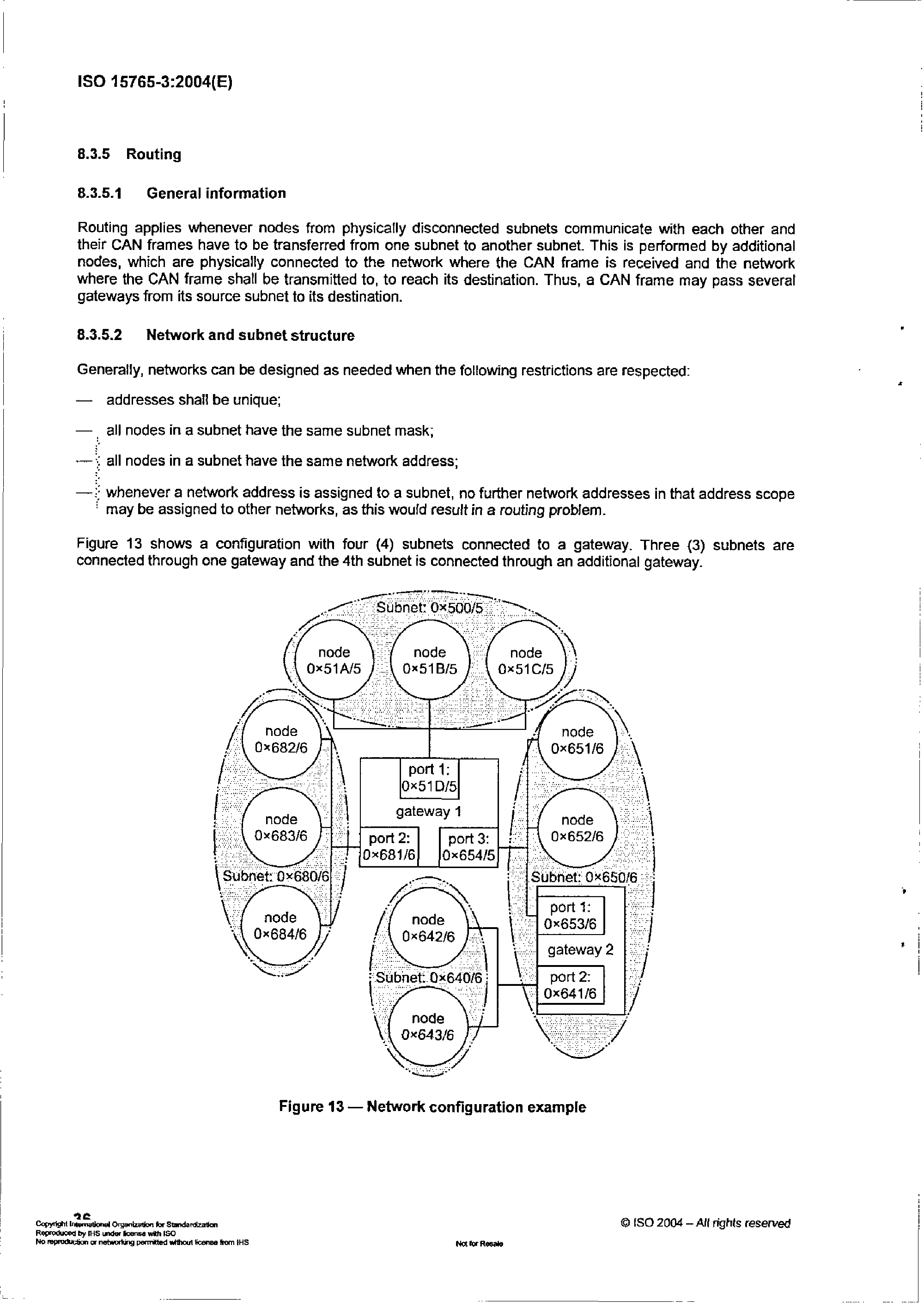 This section speifies a standardized addressing and routing concept for CAN using 29 bit identifers. The concept makes use of the well- known and approved mechanisms of the internet protocol (IP). By this means,standardized algorithms for addressing and routing can be used for all nodes in the whole network independent of their positioning in subnetworks.